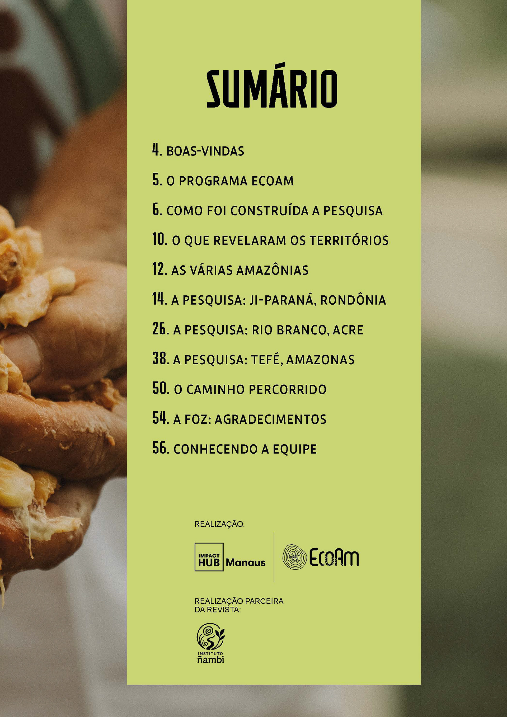 Uma pesquisa de campo do programa Ecoam, com realização da impact hub manaus e realização parceira Instituto ñambi. territórios: ji-paraná (RO), rio branco (AC) e tefé (am).